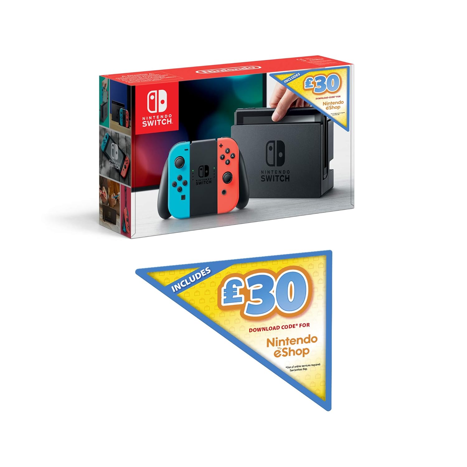 Nintendo Switch (Neon Red / Neon Blue) + Bon d'achat Nintendo eShop de 30 €